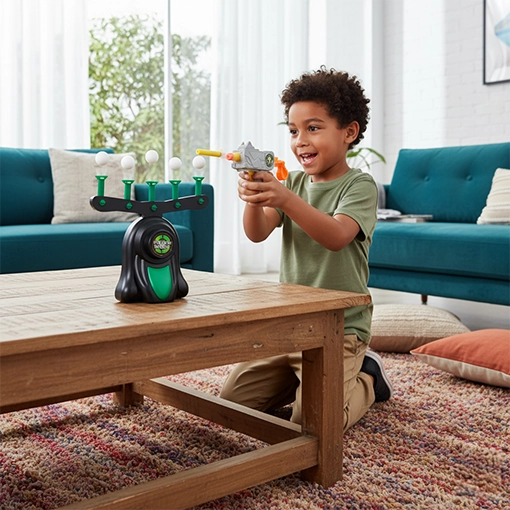 Cuenta con un sistema que dispara las bolas de espuma de gravedad cero.